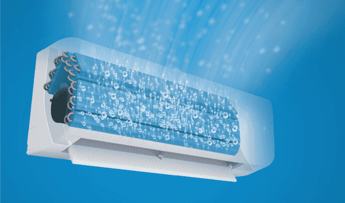 結露水で洗浄後にストリーマ照射と乾燥運転を行い、熱交換器をキレイにします。